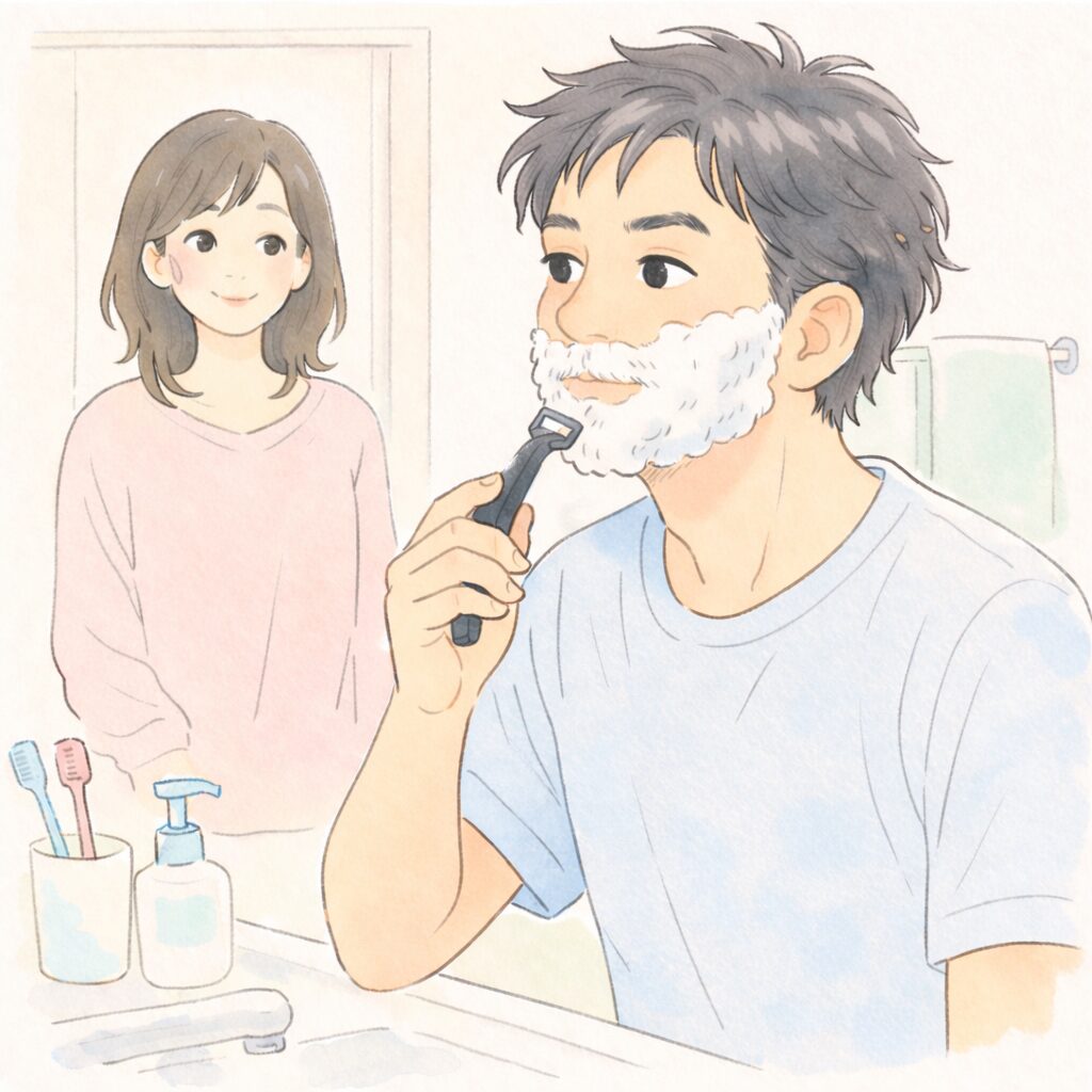 洗面所で夫がヒゲを剃っていたとき、